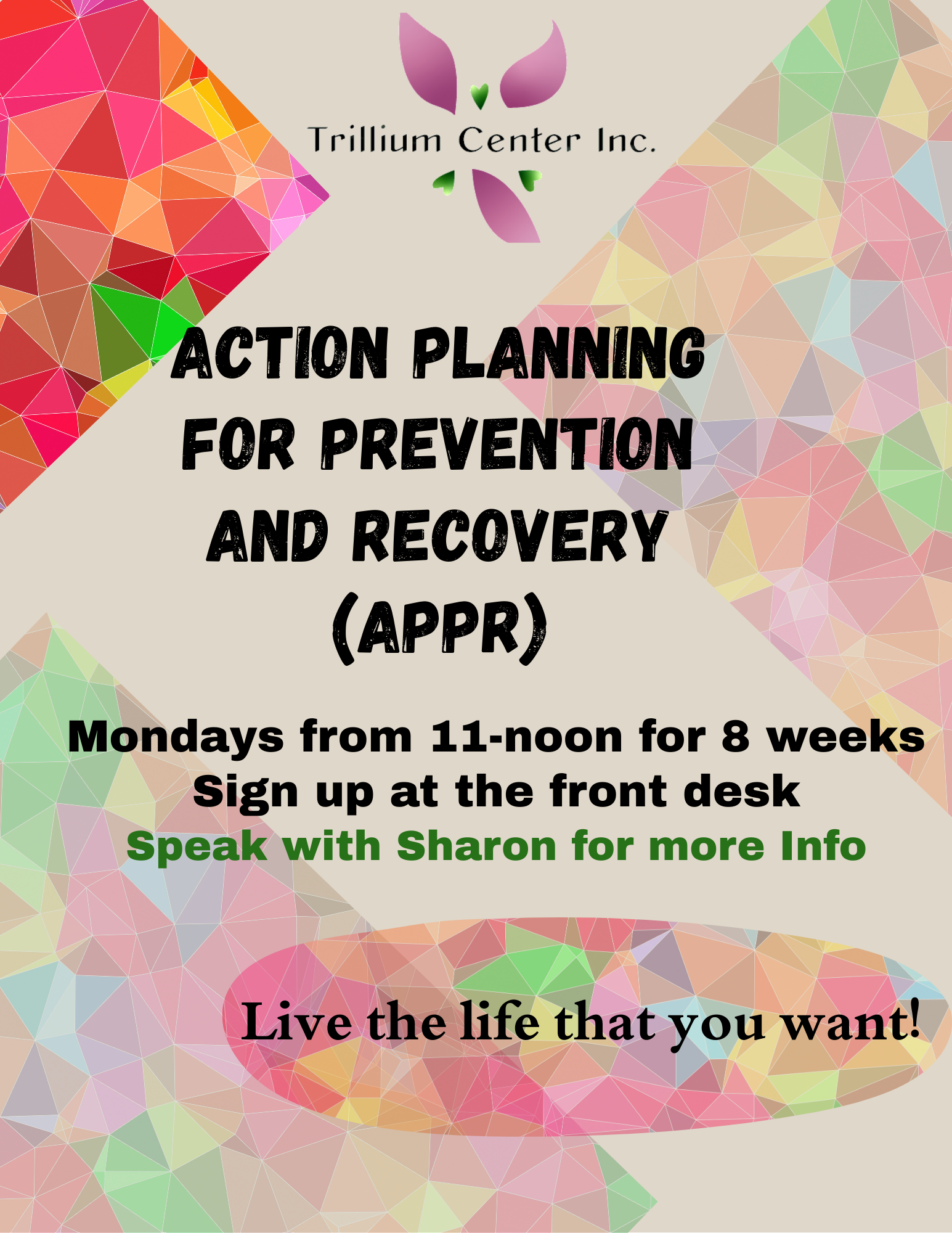 Trillium Center is a peer-led, private non-profit center for adults, that promotes, encourages and facilitates recovery from serious mental illness. Our facility gives mental and behavioral health support that includes educational, recreational, and supportive activities scheduled for each month.